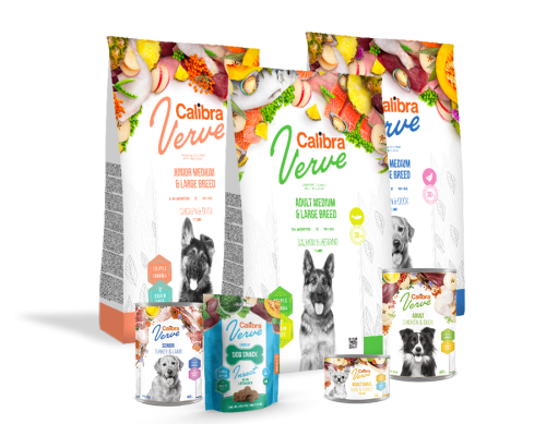 Ukusna i uravnotežena hrana koja poštuje prirodne prehrambene instinkte vaših najvernijih prijatelja – to su naše nove Calibra Dog Verve granule. Sadrže 30% svežeg mesa, što doprinosi njihovoj izuzetnoj ukusnosti. Pored toga, recepture bez žitarica formulisane su tako da odgovaraju različitim životnim fazama i veličinama pasa. To omogućava i takozvana Triple Active Formula – jedinstvena kombinacija tri funkcionalna dodatka. Pružite svom ljubimcu savršeno izbalansiranu i ukusnu ishranu uz Calibra Dog Verve!